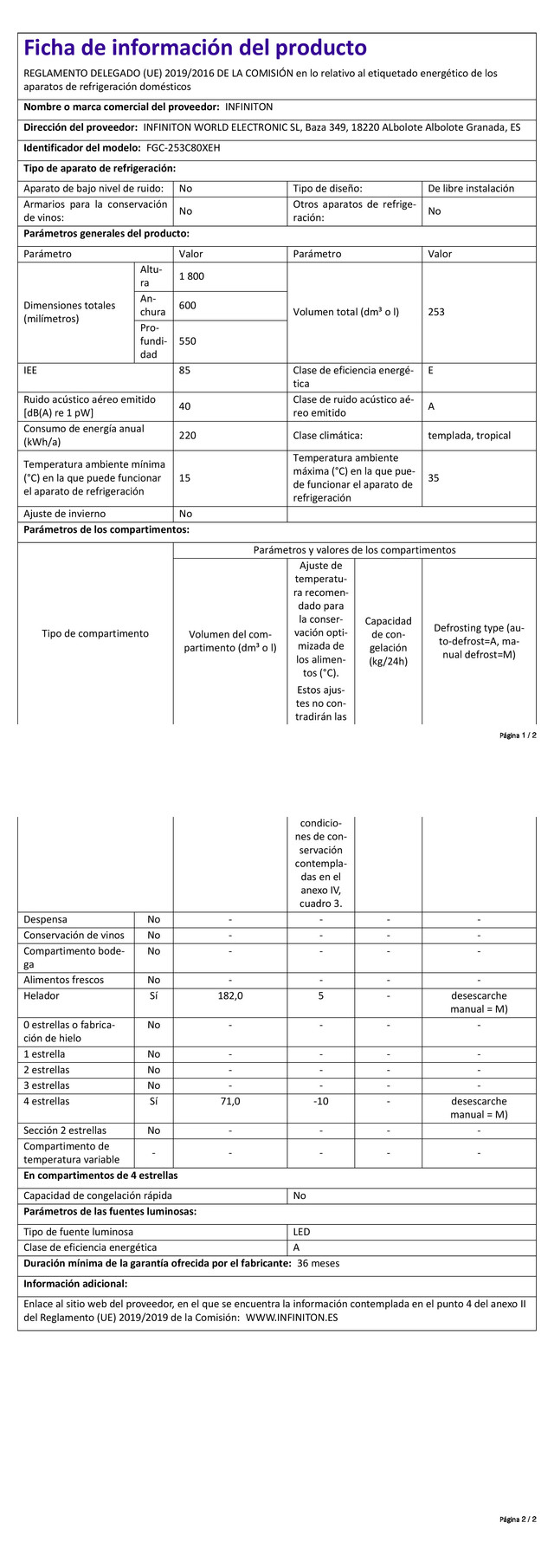 INFINITON Frigorifico Combi FGC-A184INF, 180 cm, 253 Litros, No Frost Total, E, Inox
