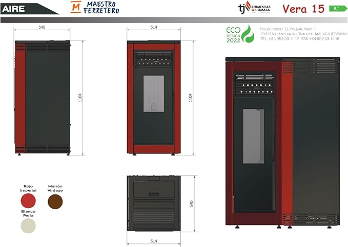 Autonomía prolongada: Puede funcionar entre 30 y 9 horas sin necesidad de recargar pellets. Diseño compacto: Con dimensiones de 514 x 541 x 1104 mm y un peso de 132 kg, esta estufa de pellet es fácil de instalar y se adapta a diferentes espacios.